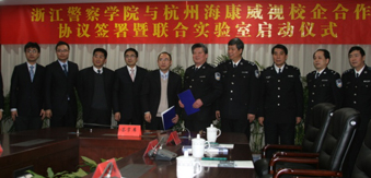 3月9日下午,浙江警察學院與杭州??低曅F蠛献鲄f議簽署暨聯合實驗室啟動儀式在浙江警察學院舉行,??低暱偛煤鷵P忠、浙江警察學院黨委書記王和出席儀式并分別發表講話。